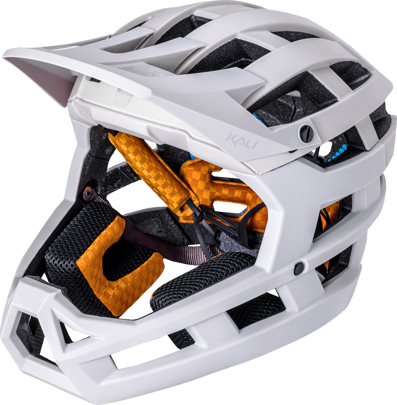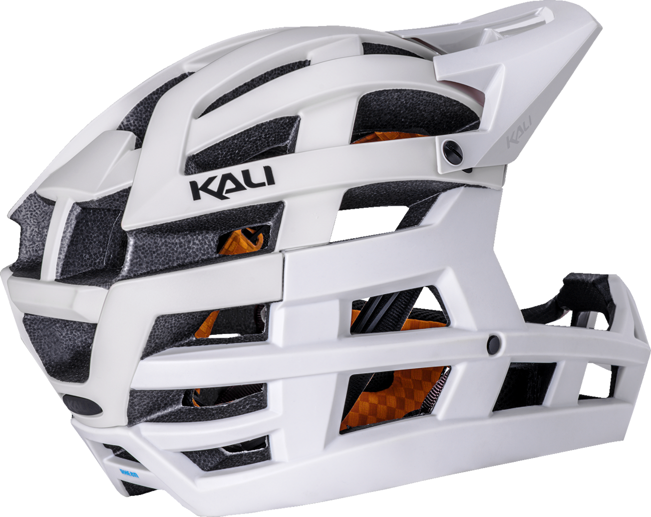 Using Composite Fusion, a process that bonds the helmet shell and foam, enables Kali to have a thinner shell resulting in a lighter, stronger helmetUnibody construction, allowing it to pass motorcycle chin bar testingAntibacterial pads and cheek padsAdjustable visor and a Fidlock closure systemFrequency Fit System allows for vertical and dial adjust
