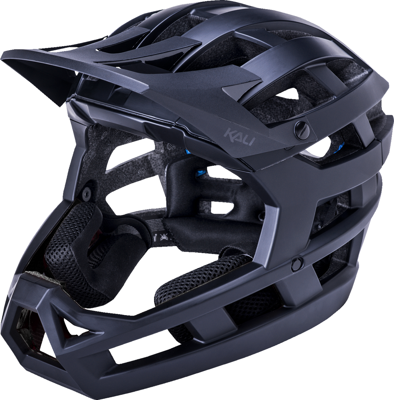 Using Composite Fusion, a process that bonds the helmet shell and foam, enables Kali to have a thinner shell resulting in a lighter, stronger helmetUnibody construction, allowing it to pass motorcycle chin bar testingAntibacterial pads and cheek padsAdjustable visor and a Fidlock closure systemFrequency Fit System allows for vertical and dial adjust
