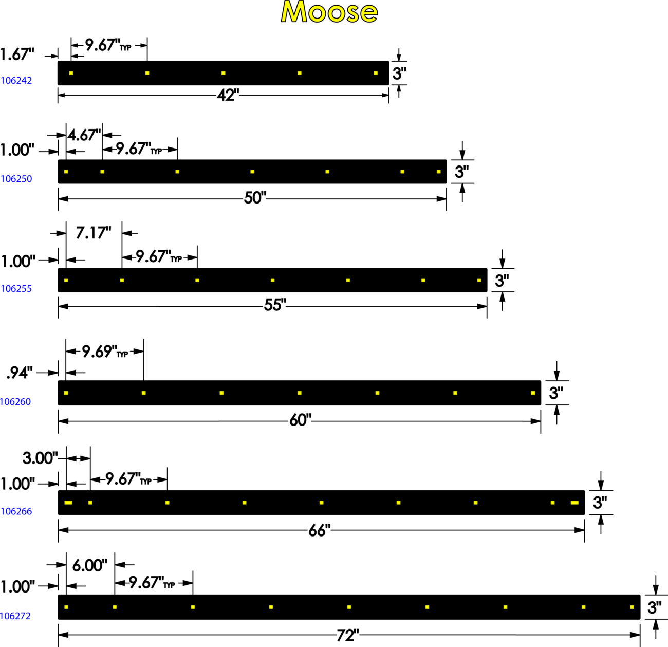 • Replace old or worn wear bars; Compatible replacements for Moose and Warn Snow Plow Blades