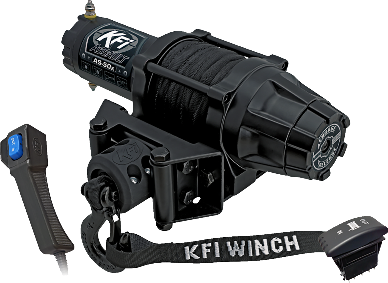 ATV Assault Series winch features Metal Cable, Cable Hook Stopper, a dynamic and mechanical braking systemWater resistant seals to keep the elements outStandard 4-hole mounting design and a heavy duty all metal turn clutchKFI 2-Year Limited WarrantyAssault Winch comes with everything you need other than an ATV model specific winch mountThe all New Heavy Duty Electric Contactor (AS-CONT) protects your ATV's electrical system and switches the power distribution of your winch that is controlled by your switches
