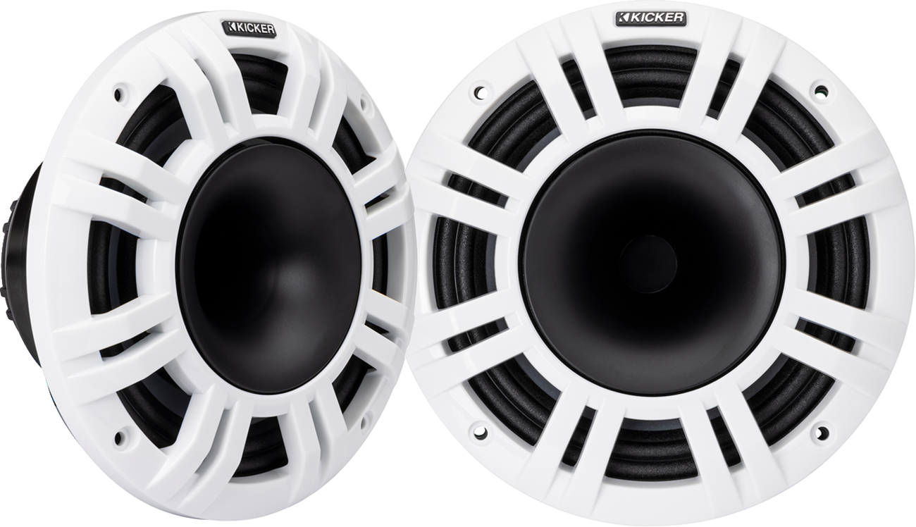Designed for motorcycle fairings or saddlebagsShallow enough for traditional speaker hole cutoutsMarine-grade, horn-loaded compression speakersProprietary high-frequency horn designLightweight neodymium magnets and aluminum-dome tweetersAll-weather use with sealed motor structure for protectionIncredible performance during noisy outdoor listeningUV-treated, waterproof polycarbon-fiber woofer conesIntegrated multi-color LED lightingIP66 certified