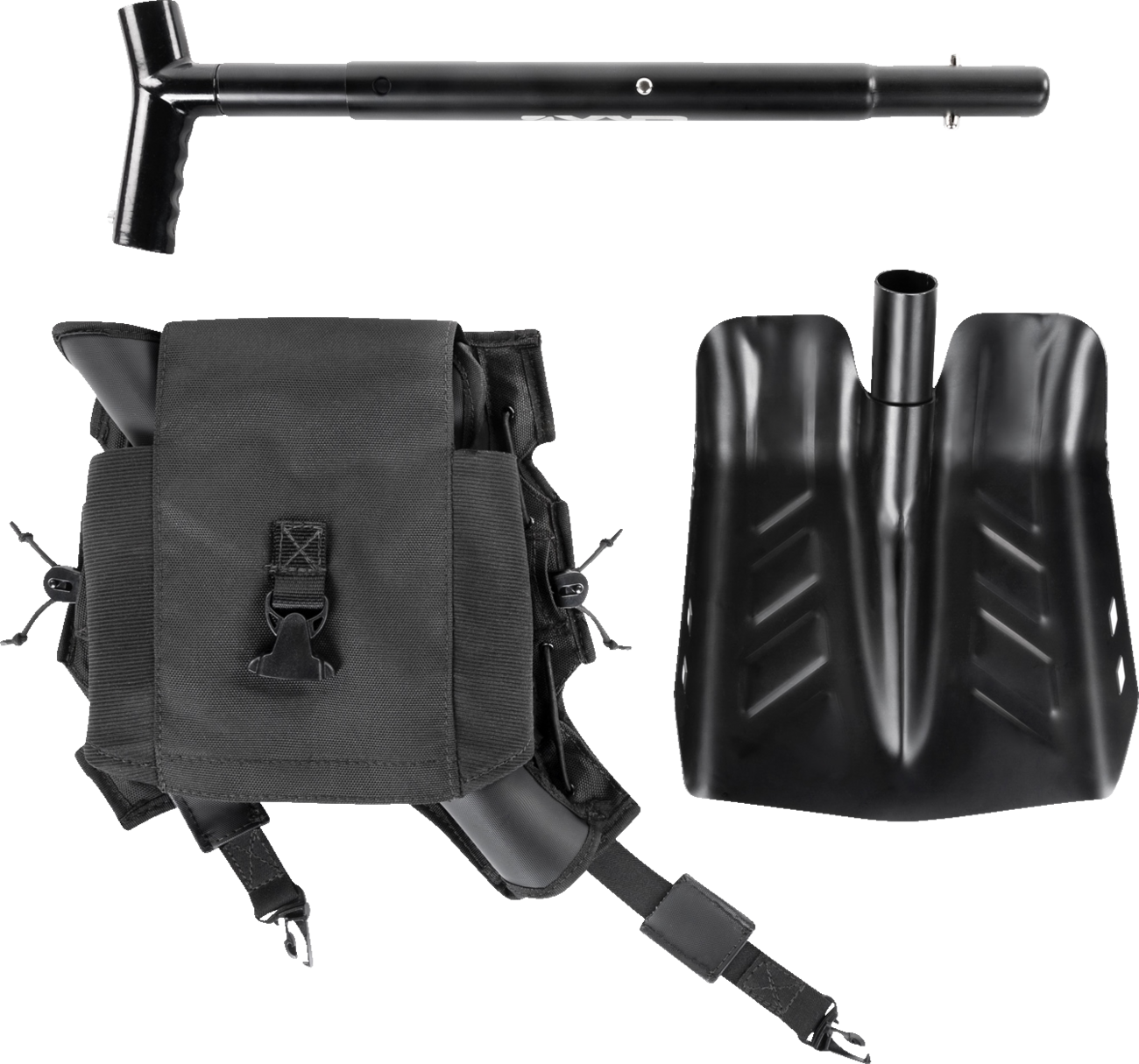 Compatible with most popular shovel brandsEasy shovel access due to optimized ergonomics and compact designAttaches on the Kimpex Connect Adventure and Explorer bags cover, tool free