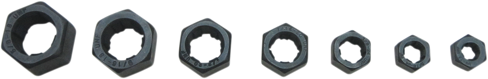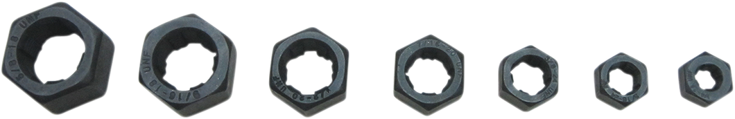 Features: Sizes: 1/4"-28, 5/16"-24, 3/8"-24, 7/16"-20, 1/2"-20, 9/16"-18, 5/8"-18