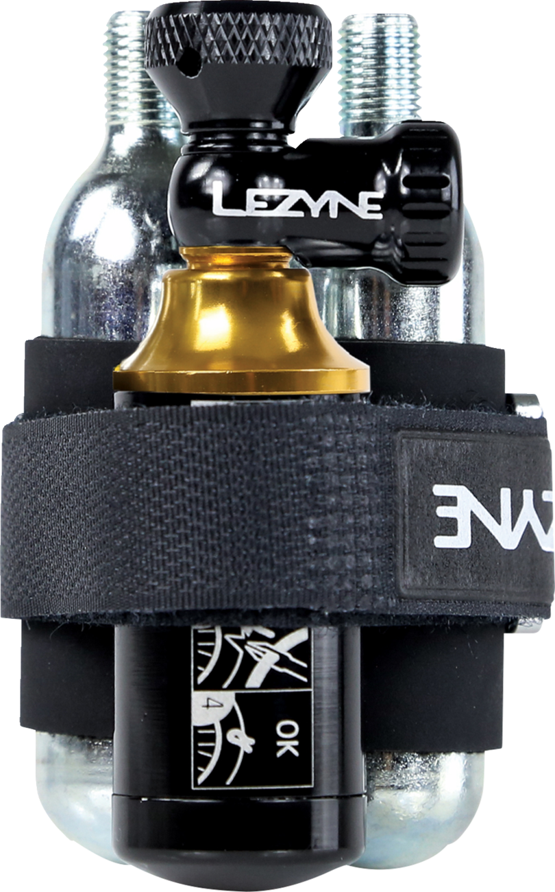 This innovative 2-in-1 cycling CO2 dispenser and tubeless tire repair kit simultaneously inflates and seals tubeless tires Built from machined aluminum constructionA hardened steel reamer scours the hole, inserts the plug and inflates the tire for an efficient and rapid repairA CNC-machined twist knob manually controls release of CO2 gasAluminum canister holds the five included tire plugs and safely stores the reamer when not in useHigh quality tire plugs aggressively seal holes that are too large to be sealed by sealant aloneSleek, compact design comfortably fits in your pocket or straps to your bikeIncludes two 20-gram CO2 cartridges and a simple Velcro strap