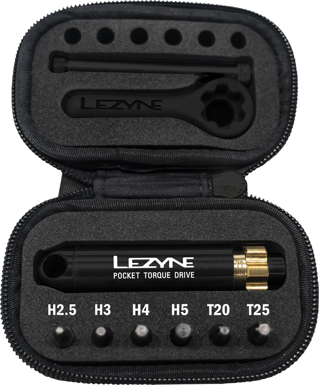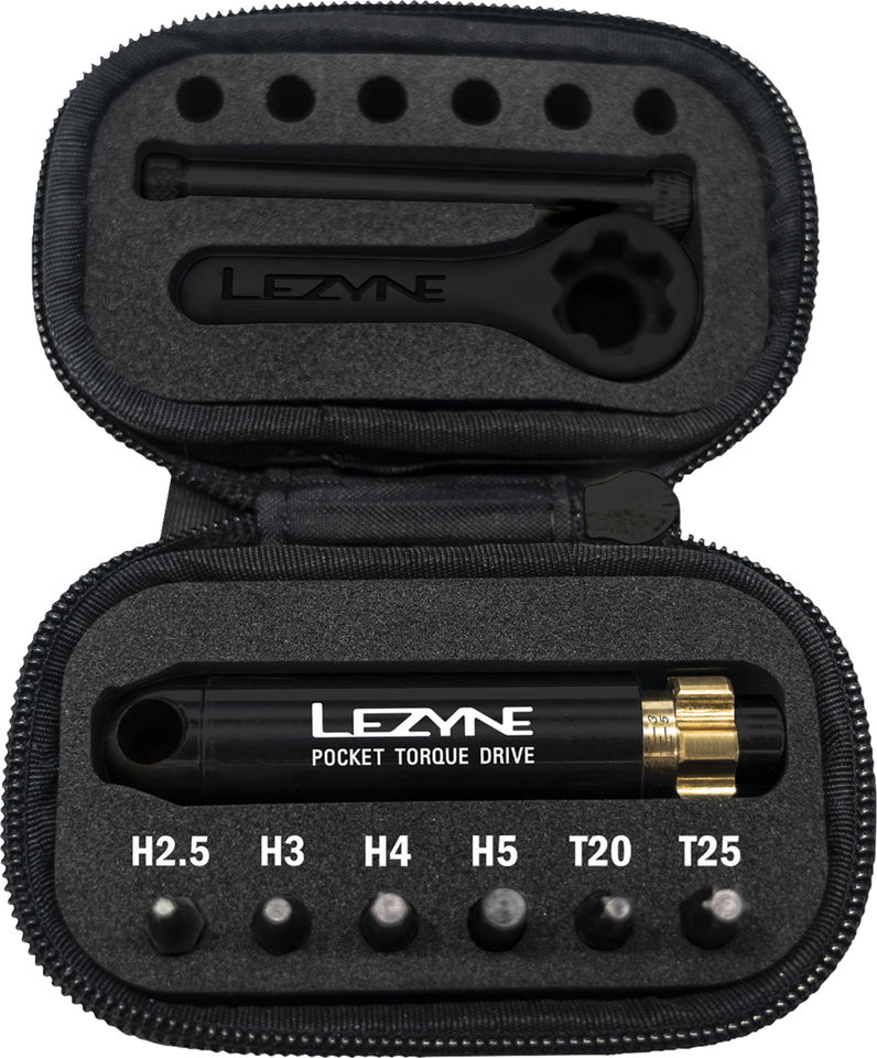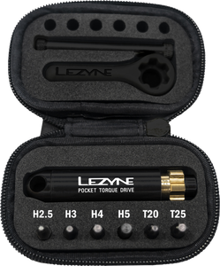 Innovative, beautifully crafted torque wrench with classic Lezyne styling and superior functionalityPre-calibrated torsion ratchet tool constructed from durable, lightweight machined aluminumWith the handle removed, the wrench packs up neatly into a compact, molded EVA case and comes equipped with six hardened steel bits, including 2.5, 3, 4, 5 mm hex bits and T20, T25 Torx bitsCustom Composite Matrix key is included to help easily adjust the wrench's torque settingAdjustable between 2-6 Nm increments and features a magnetic bit holderThis is the ultimate portable bicycle torque wrench for professional level shop use or on-the-fly adjustmentsWeight — 110 g tool and bits, 130 g with case