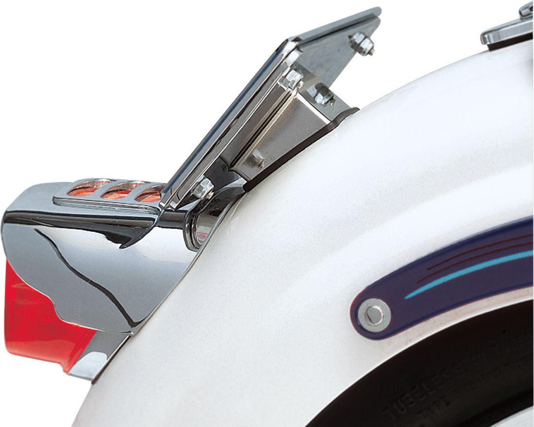 Replaces the standard 3-bolt bracket and tilts the plate backKit includes a rubber wedge so you have an option as to how far the plate lays downAccepts most 4" x 7" license plates