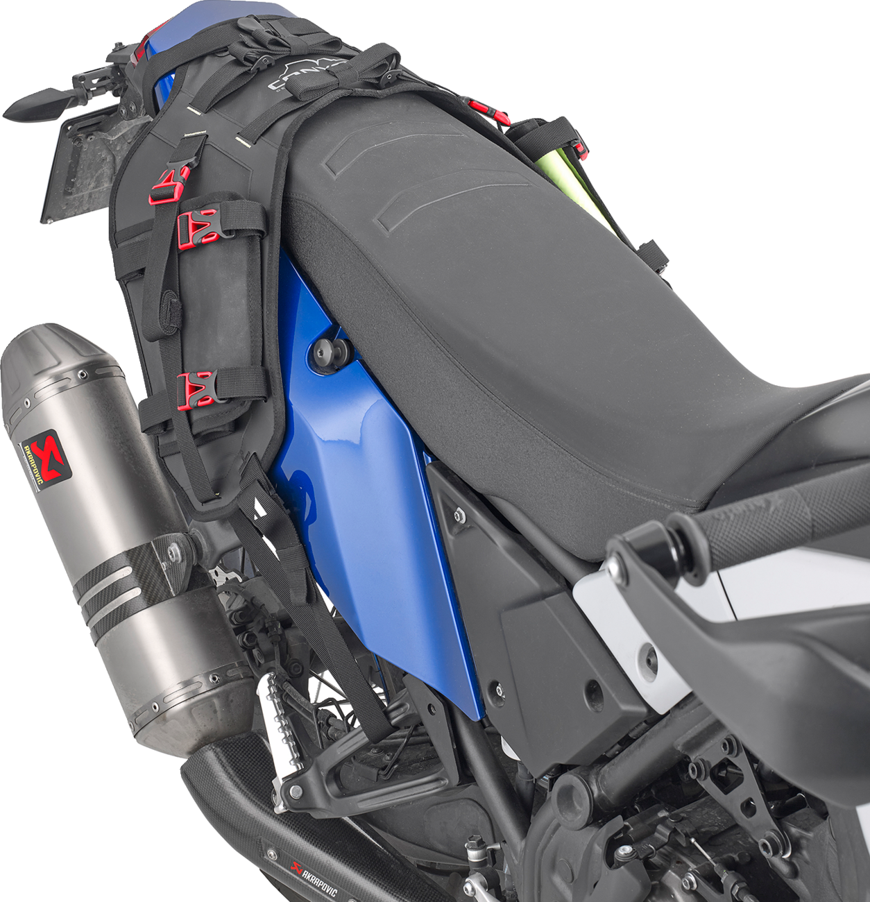 Side flaps covered in Hypalon, with straps for attaching the bags; they allow the load to be held and protect the bags in the event of a fallCentral straps for securing additional upper load, with clamp closure to ensure tension tightnessFastening to different models of motorcycles, by means of adjustable belts equipped with clamp closure to ensure that the tension is maintainedReflective patterned prints for greater visibilityNon-slip material on the base