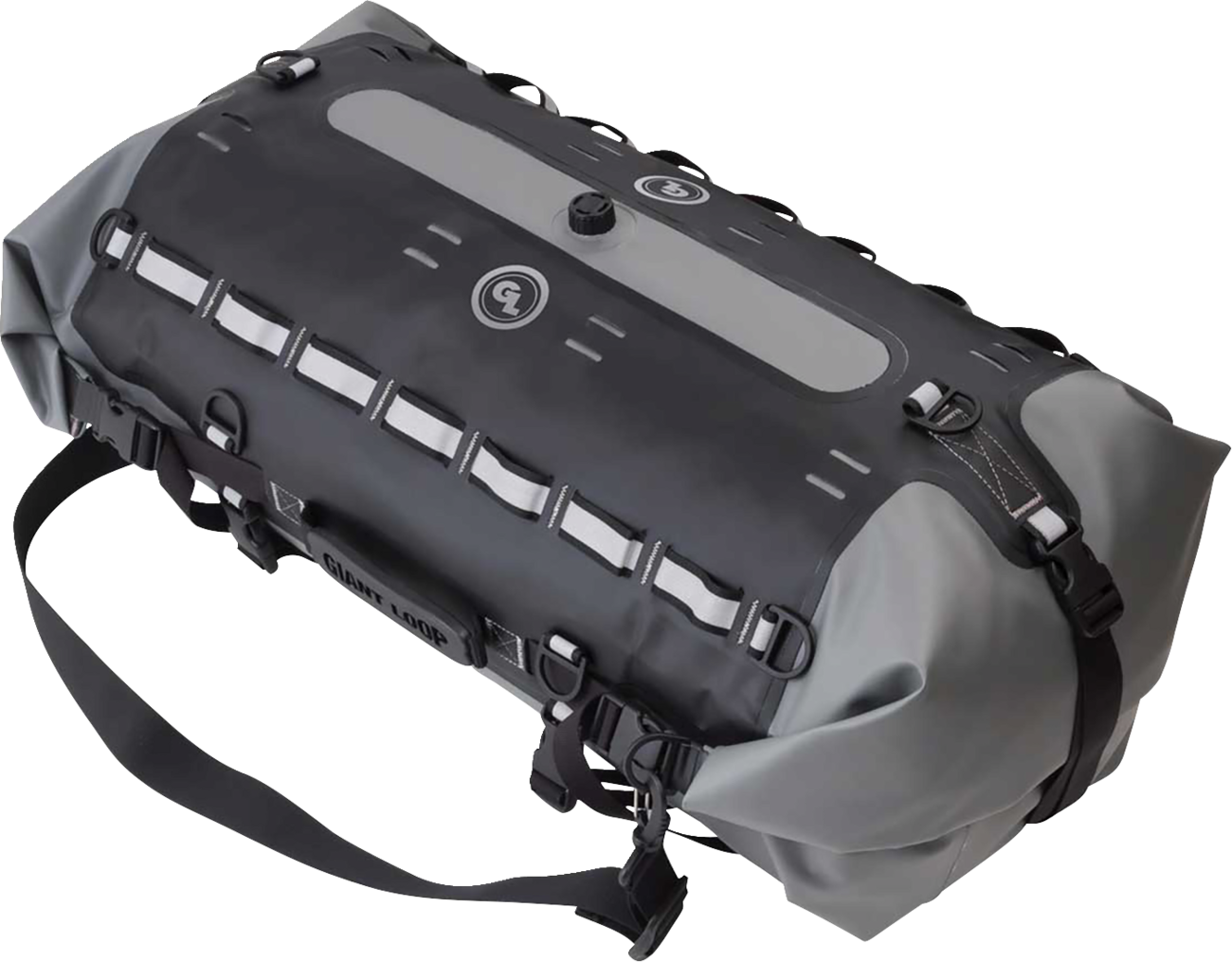 Expedition-sized, roll-top dry bag with an integrated anchor strap system ideal for an array of vehicle-based adventuresFeatures 48 liters of waterproof storage and seamlessly integrates with Giant Loop Saddlebags and PanniersOpenings on both ends mean quick and easy access without having to unstrap from saddlebags, panniers, or remove from a rackA handy air purge valve allows compact compression of gear and bag when packingTwo included carry straps convert into a backpack for easy transportRugged Bomb Shell coated fabric construction with 100% waterproof radio-frequency (RF) welded seamsIntegrated anchor strap system secures dry bag with four girth-hitch webbing straps and heavy-duty side release bucklesLoaded with gear and ends rolled three times for waterproof seal: 26" Length x 13" Wide x 37", Circumference (66 cm L x 33 cm W x 94cm C)