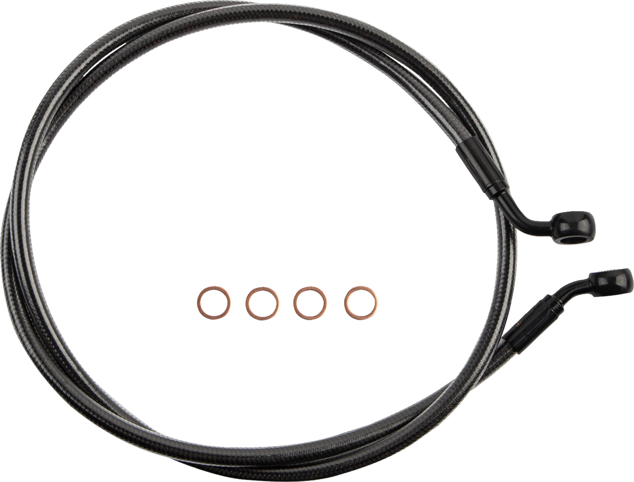 Features Housing length is measured from the center of the banjo hole at the master cylinder to the flat part of the 90° at the caliper E-Z Align rotating caliper banjo feature allows for perfect no-kink fitments Fittings offered are in 7/16" or 10 mm sizes, with 90°, 180°, 35°, and 60° degree bends. The caliper banjo will be a 90°or a 60° 10 mm E-Z Align rotating caliper banjo Specs