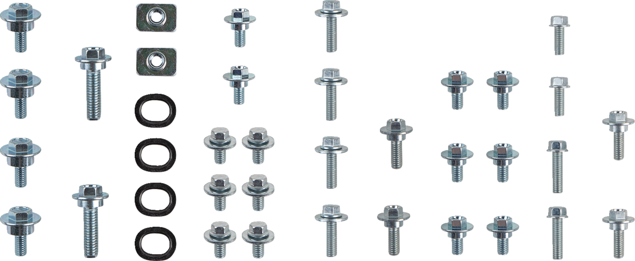 • Includes all the fasteners, shoulder bolts and aluminum bushings needed when replacing the fork guards, fenders, number plates, radiator shrouds and seats