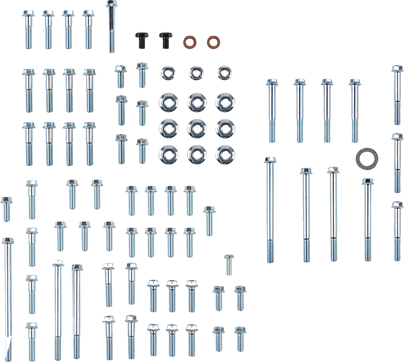 • Engine fastener kit comes with modern dimpled flange bolts. With a bright zinc finish, these fasteners last long and give a clean, updated look to any engine
