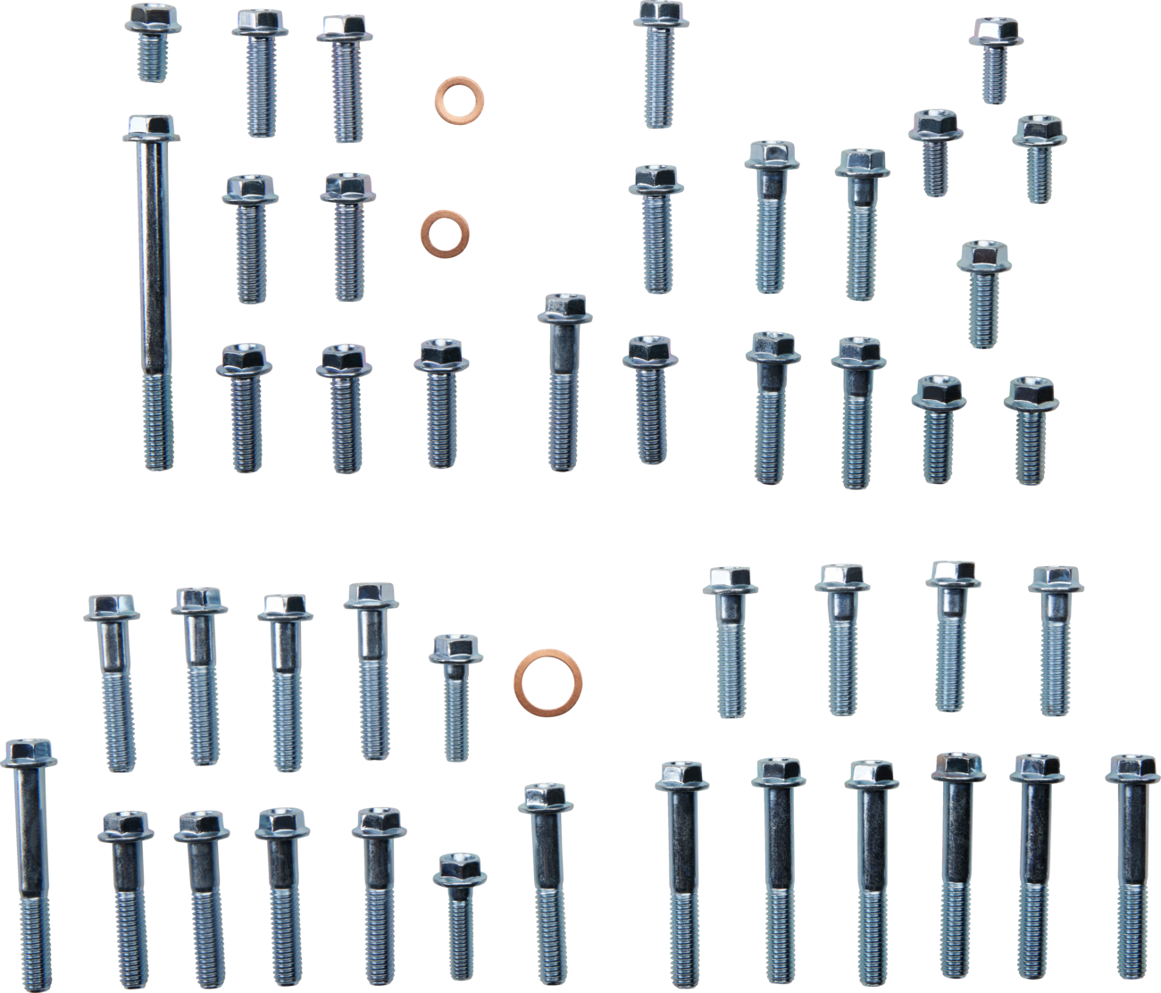 • Engine fastener kit comes with modern dimpled flange bolts. With a bright zinc finish, these fasteners last long and give a clean, updated look to any engine