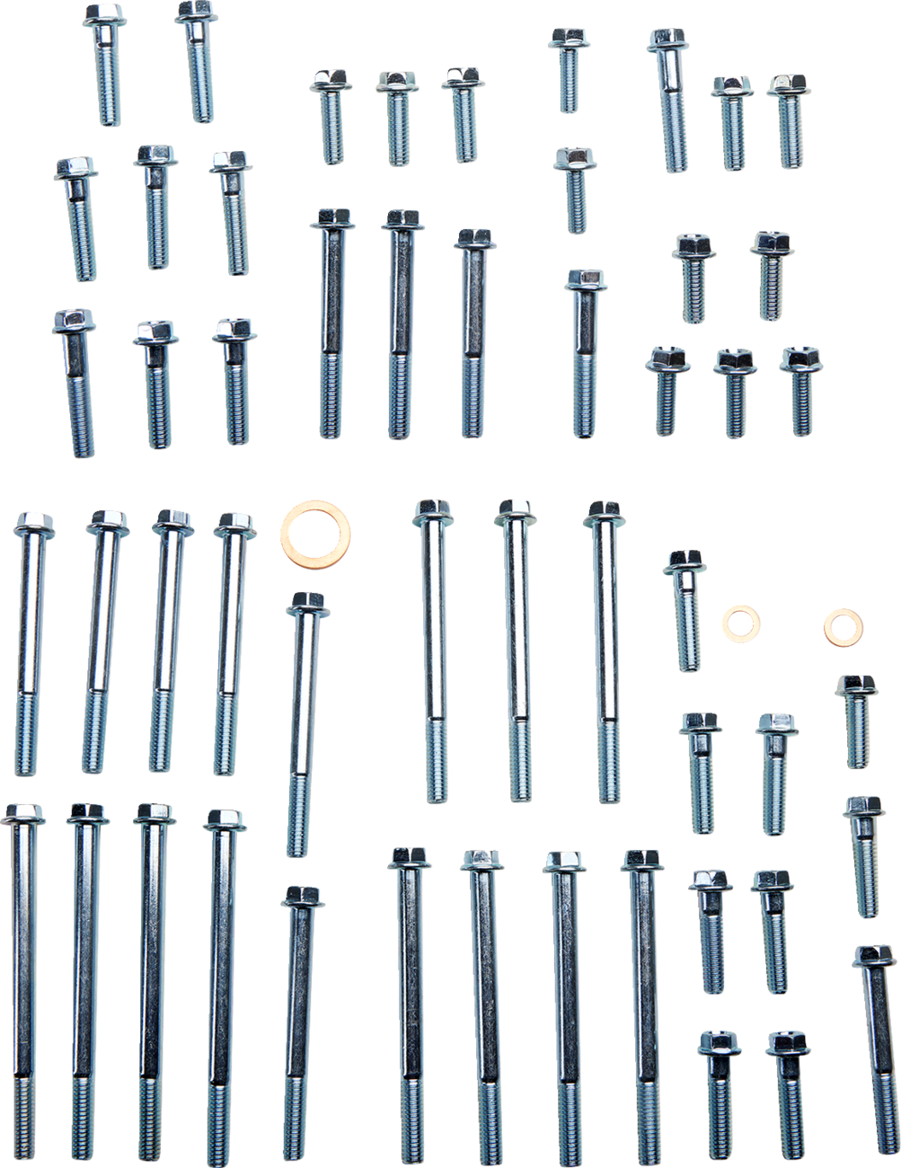 Features Engine fastener kit comes with modern dimpled flange bolts. With a bright zinc finish, these fasteners last long and give a clean, updated look to any engine Contents are in labeled bags for accurate placement Specs