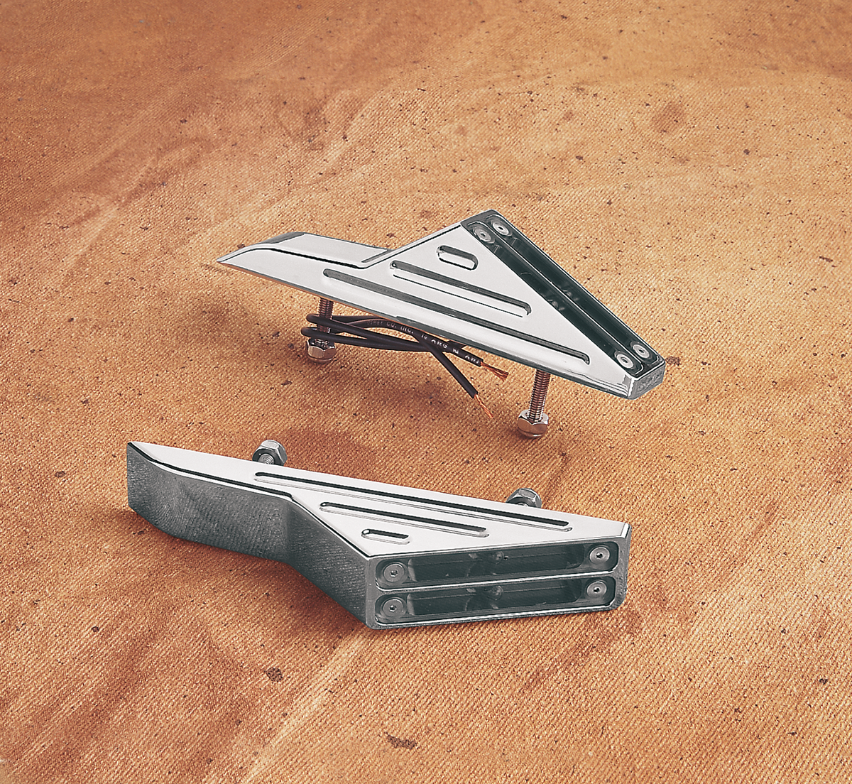 Chrome-finished billet aluminum with ball-end milled groovesUniversal side-mount applicationMeasure 6" L x 1-1/2" W x 1" DDual circuit allows use as turn signals and running lightsAmber lenses included