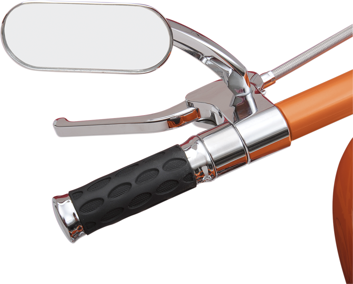 Designed by master bike builder Don HotopMachined from billet aluminumMirror head measures 5" x 2" with a 5-1/4" stemFits right or left sideMount with 5/16"-18 hardware (not included)Made in the U.S.A.