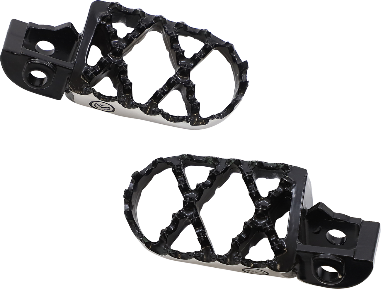 Features Each footpeg is cast, heat-treated, and hardened from 17-4 stainless steel, given a solution annealing treatment, and age hardened for superior strength Width (57 mm) and length (90 mm); slightly convex platform for better boot positioning and grip when leaning forward or back Dual-plane teeth provide traction without the "stuck" feeling Available with 1/2" rear offset to allow more space Made in the U.S.A. Specs