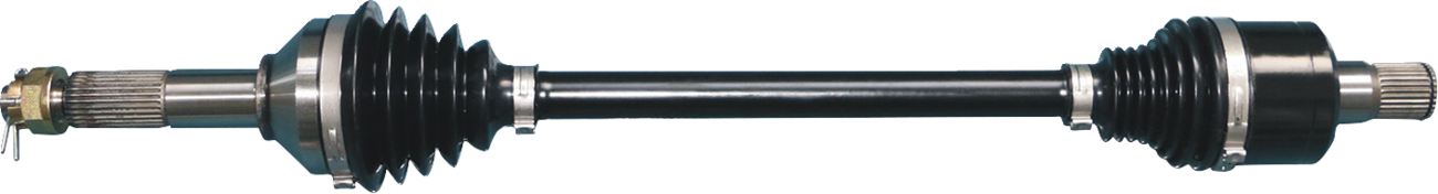 Precision-machined and heat-treated solid chromoly steel center shaft, cages and ball bearings up to 35% strongerHighest quality, most reliable, and toughest constant-velocity (CV) axles on the marketInduction heat-treated joints with premium heavy-duty, high-temperature moly greaseDesigned to withstand the most rigorous conditions and terrainPrecision-rolled splines and threads improve fitment and wearTPE dust boots for superior tear and puncture resistanceTorture-tested to failure to ensure maximum durabilityExceeds OEM quality in fit, form and functionSecure stainless steel dust boot clampsFully assembled for easy installationSpecs