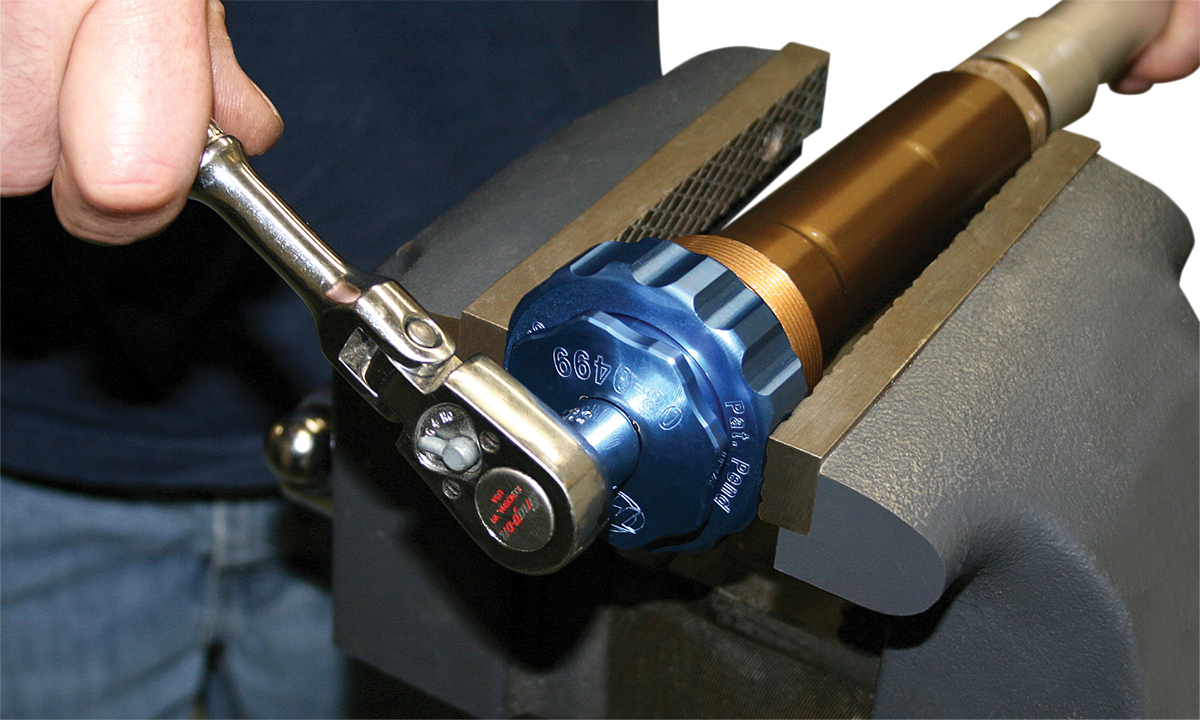 For removing the fork cap and compression cartridge on twin chamber Showa forks found on late-model Honda, Kawasaki and Suzuki off-road motorcyclesOuter ring fits 50 mm octagonal fork cap and can be clamped in vise to hold fork cap securely while cartridge is being removedProvides more secure grip on fork cap and cartridge and reduces risk of damage during disassemblyInner body holds cartridge so it can be removed from fork capMade in the U.S.A.Specs