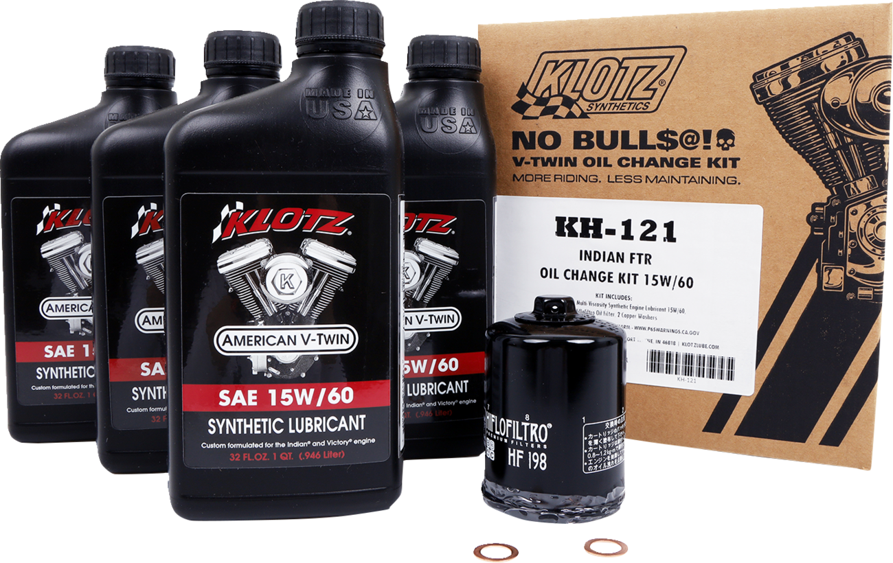 • Klotz® V-Twin Oil Change Kit comes with just the right amount of lubricant, no more no less
