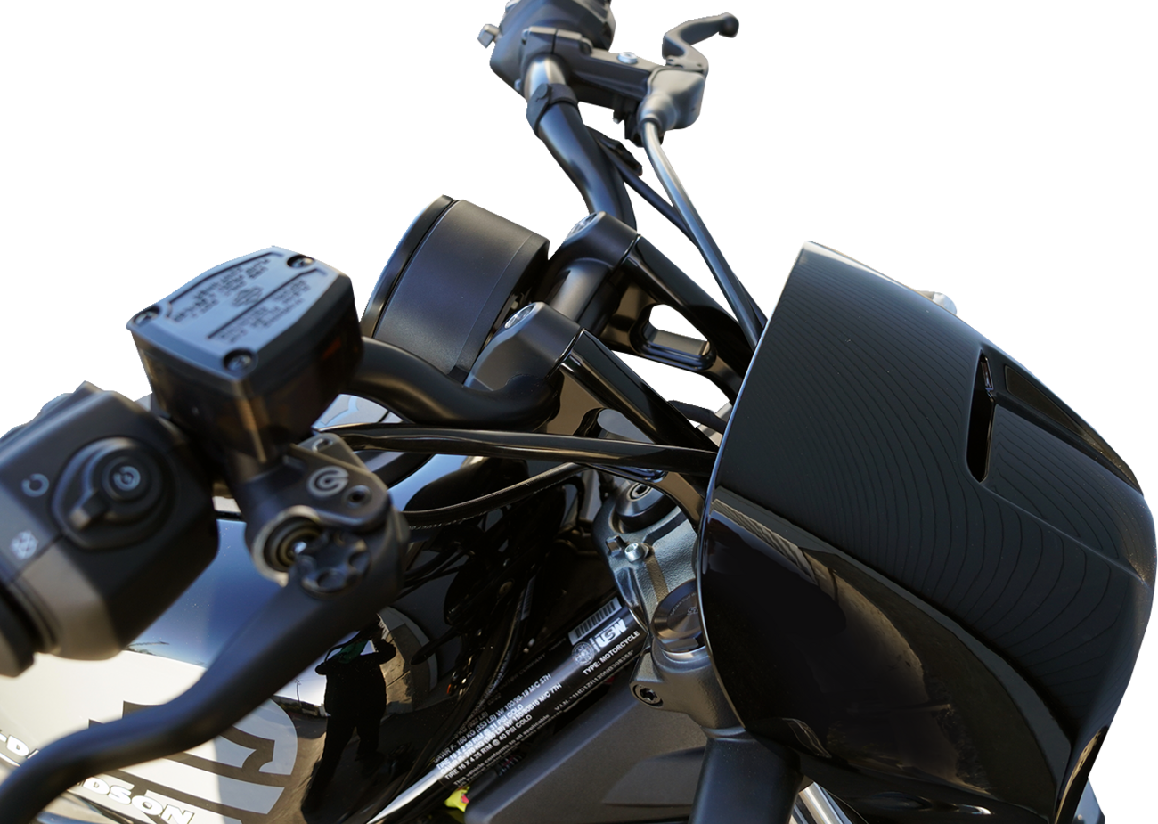 • Each riser kit moves the factory handlebar and gauge assembly up and back towards the rider