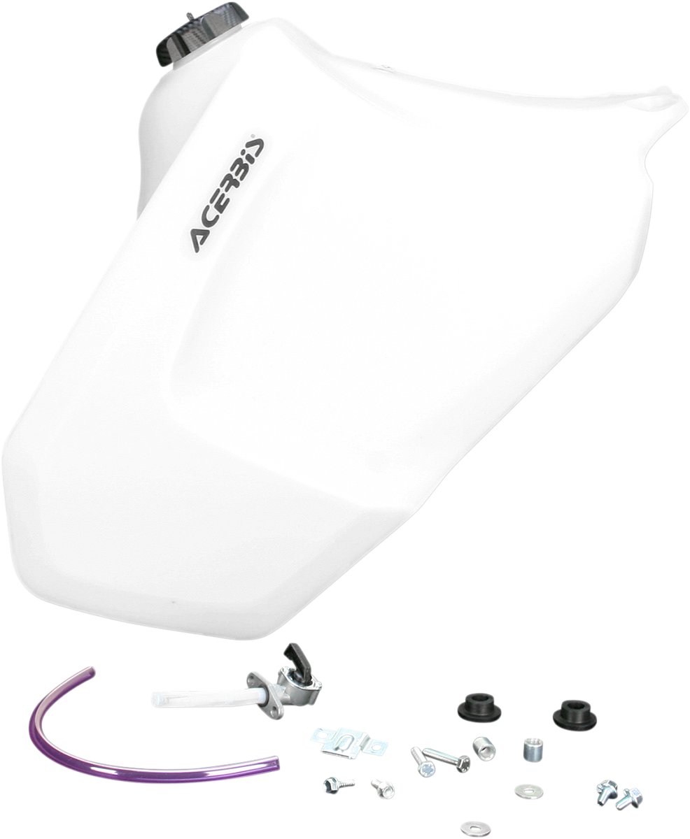 Caps, applicable mount kits, fuel lines, petcocks and Y-fittings per application included as neededWorks with Acerbis' MDR gas capExtra-thick material for durabilityLegendary Acerbis fit and finishIncludes mount kitEasy installationSpecs