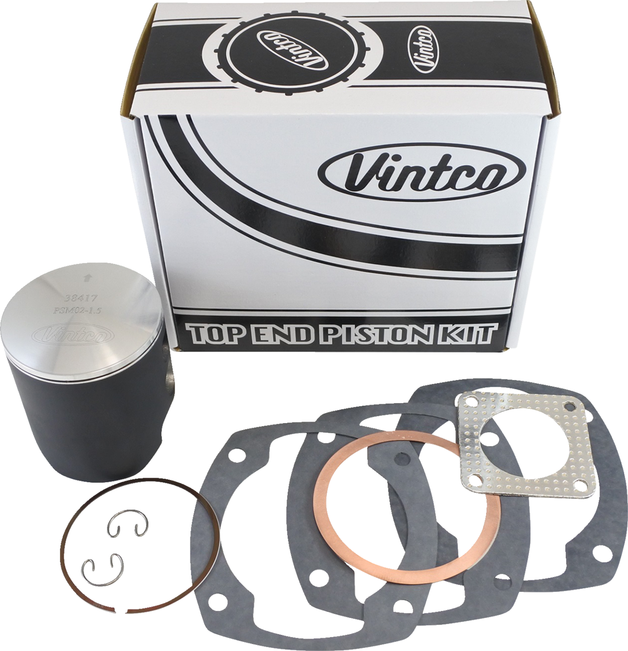 Includes a piston, rings, pin and clips, top end bearing and a full top-end gasket kit (head gasket, base gasket, intake gasket, and exhaust gasket)