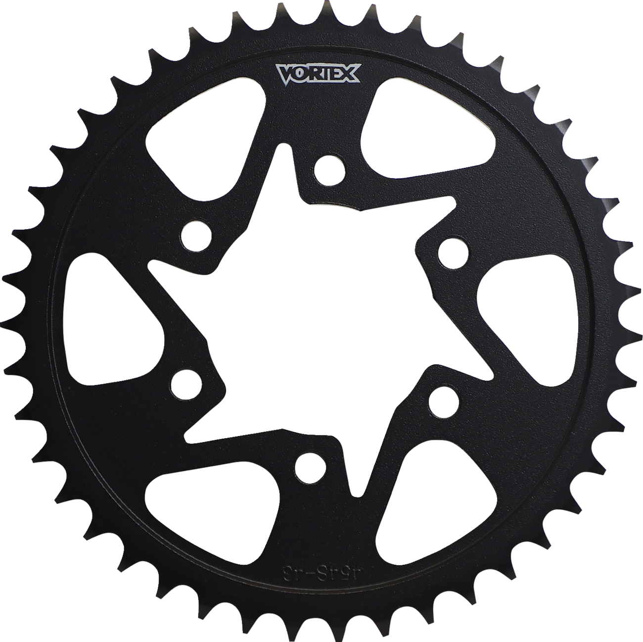 Steel rear sprockets are made from carbon steel and electroplated with a satin black finish that resists corrosion; teeth are hardened so sprocket will hold up to many miles, without affecting strength