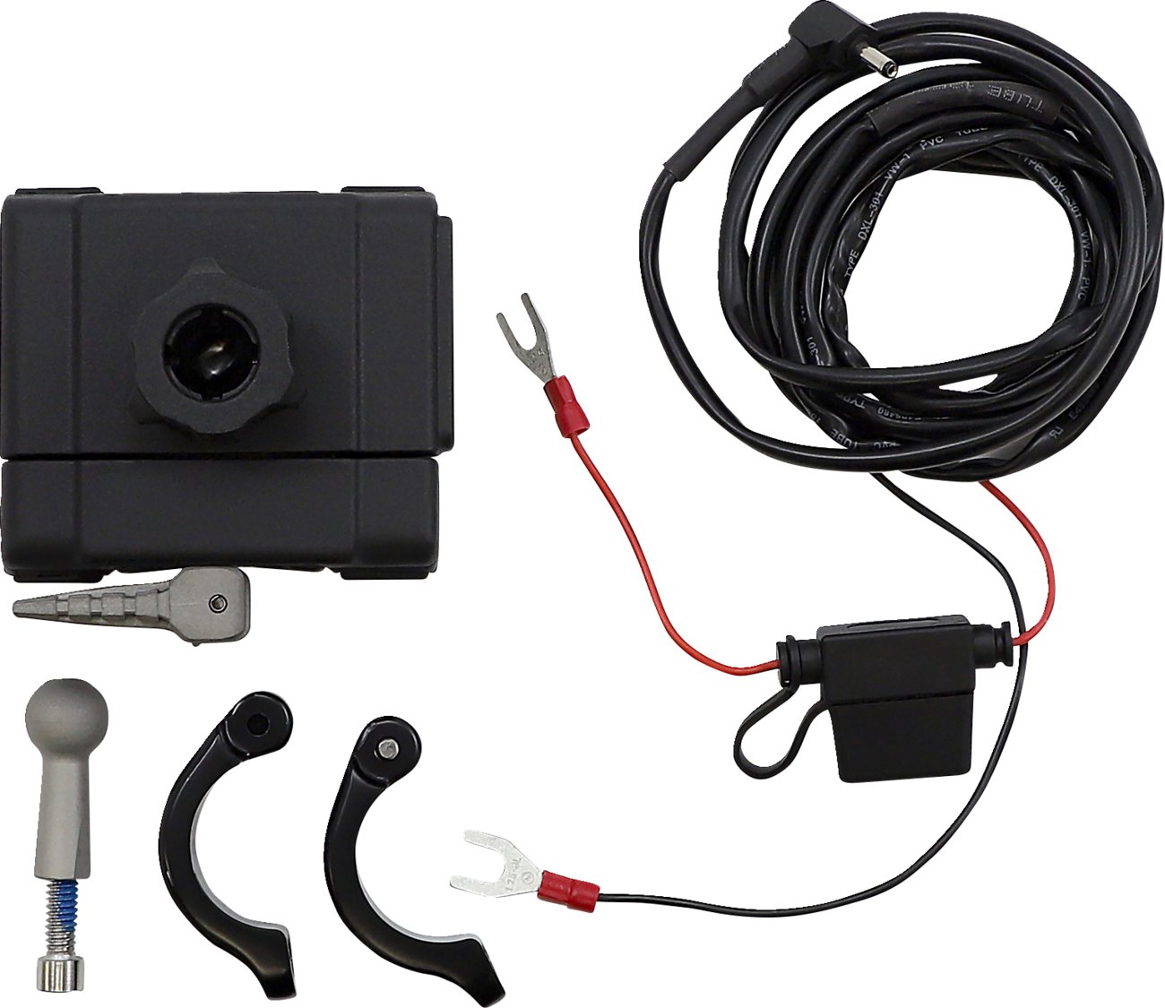 Charger model has 1.3 USB port for on-board charging as you ride (cable not included)Quick and simple ambidextrous design lets you just flip the lever to lock smartphone into the secure rubber molded fingersInfinite adjustment with Ciro ball-mount designIntuitive ball mounting system allows for a broad range of angle adjustmentFit devices from 2-1/8" - 3-1/2" wideAmbidextrous designPhone cable not included
