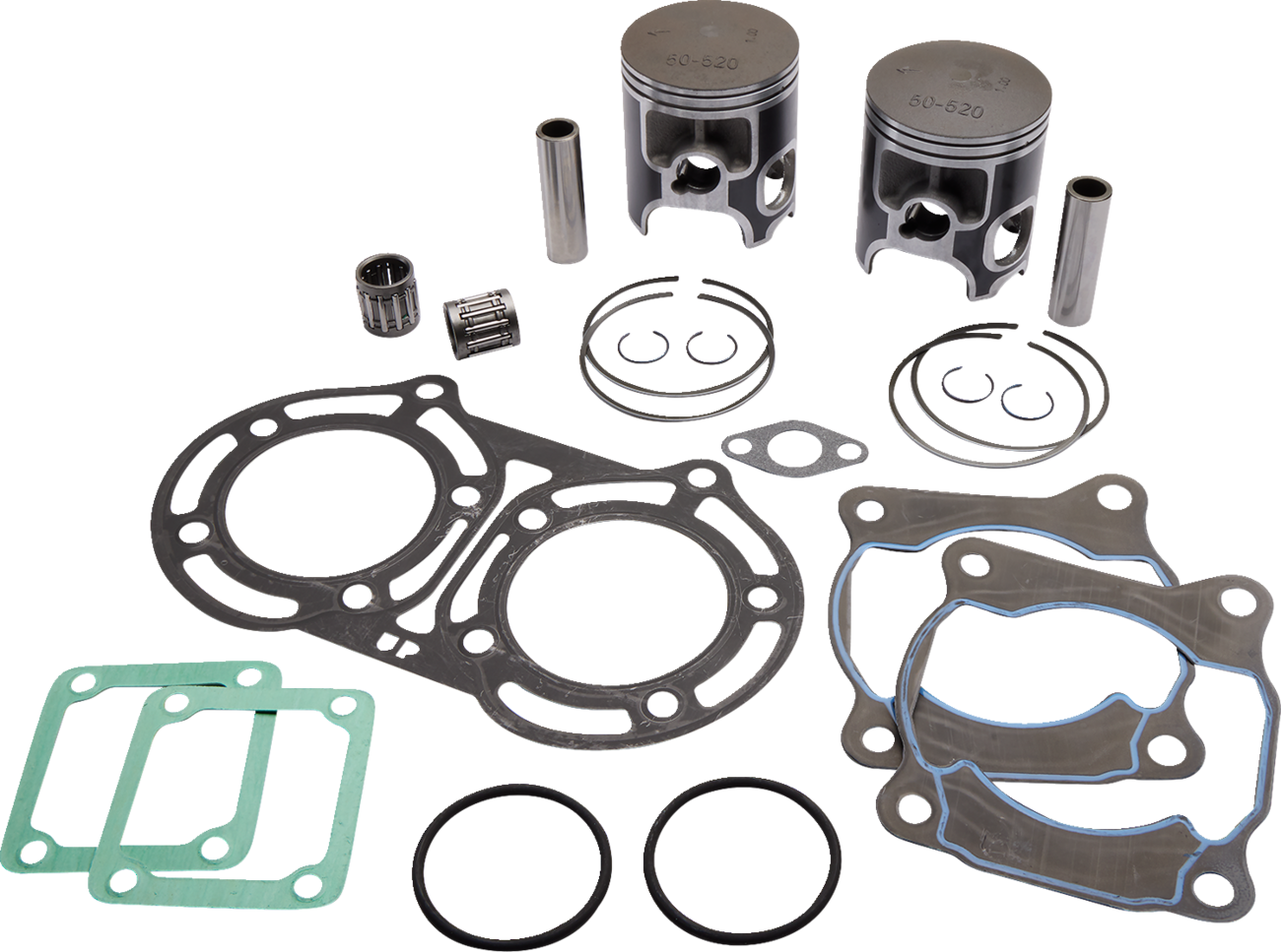 Top-quality piston kitIncludes pistons, rings, pins, clips, racing needle bearings, head and base gaskets, intake and exhaust gasketsSpecs