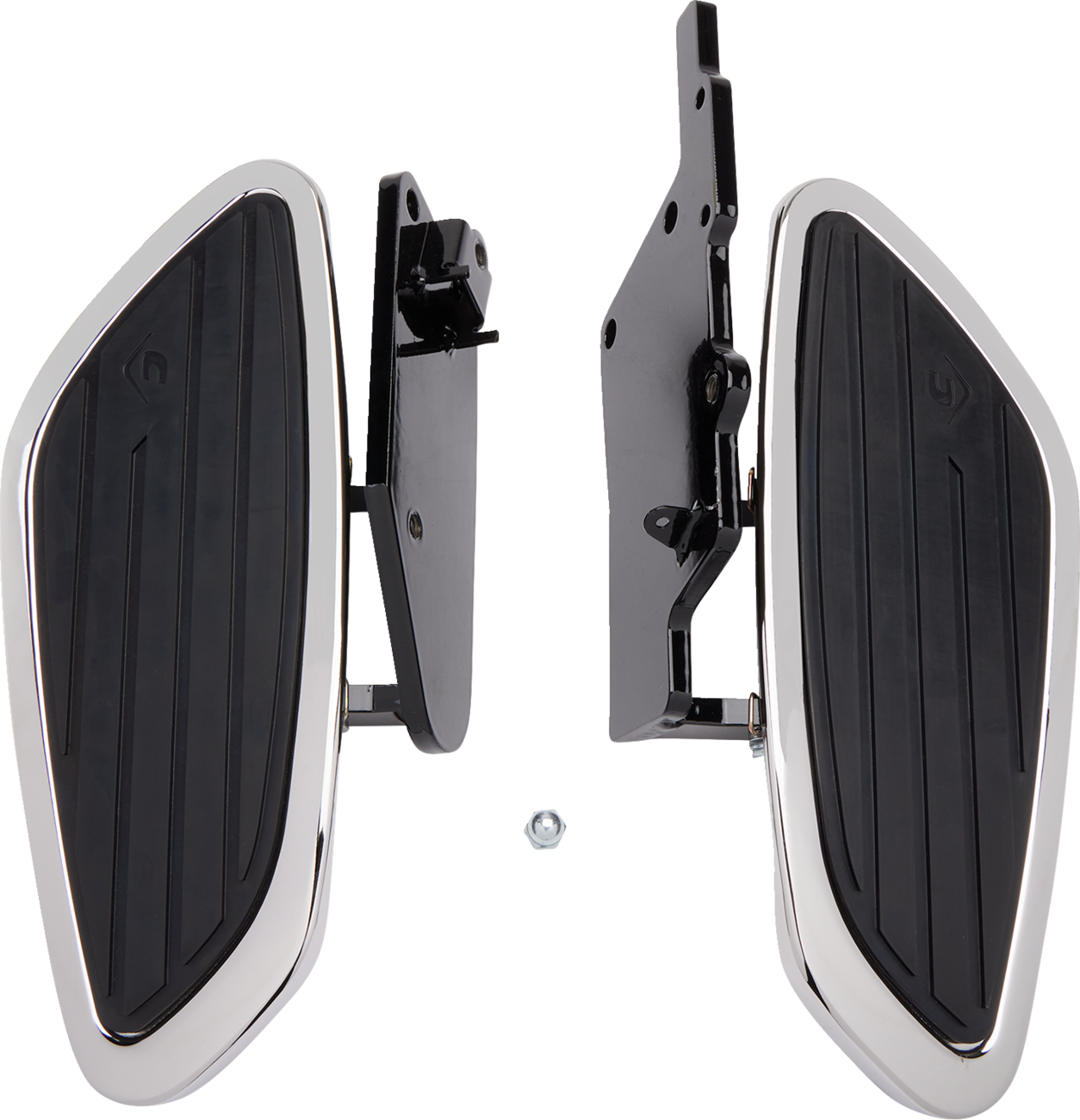 Custom-look swept design will make any bike stand out in a crowdQuick and painless installation - all kits bolt right onMore leg roomOutstanding vibration isolationClassic American looksFront kits are chrome-plated stamped steelMade in the U.S.A.Specs