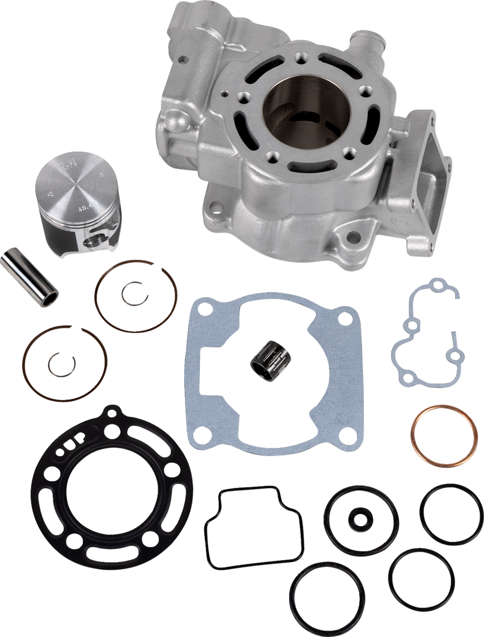 Ready-to-install, direct bolt-on cylinders require no re-plating and look virtually identical to the OEM cylindersCylinder kit includes matched Vertex pistons to ensure longevity, performance and reduced engine noiseNickel Silicon Carbide plated for long lifeKit comes complete with gaskets, cylinder, piston, rings, pin and clipsBig bore cylinders do not require machine workMade in the USASpecs