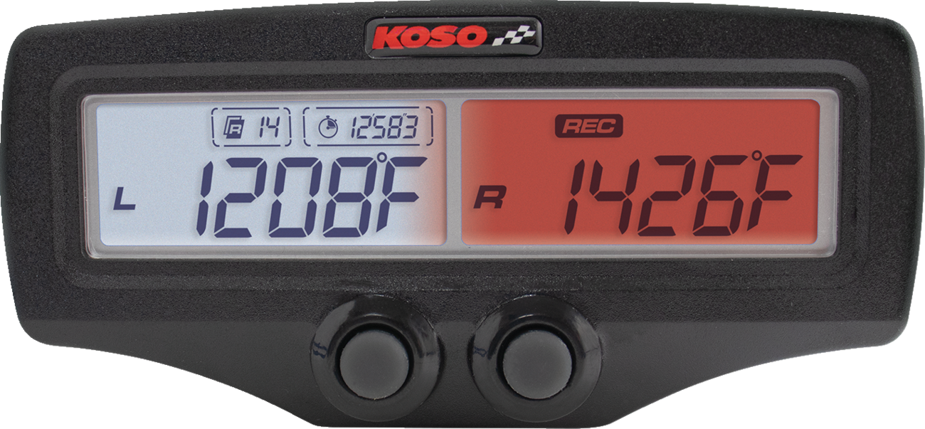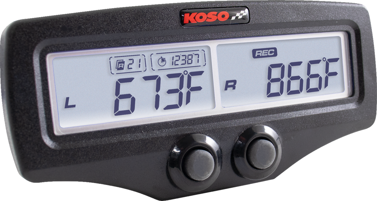Dual exhaust temperature meterAllows rider to tune engine more precisely and keep a record of your previous runs (up to 50)Settable warning for each cylinder gives the opportunity to set a maximum temperature warning of up to 2100°FThe red flashing of the screen makes it very easy to see if something is going wrong with the engine (This tool could save motor)Effective temperature range of 14°F - 140°F (-10°C - 60°C)