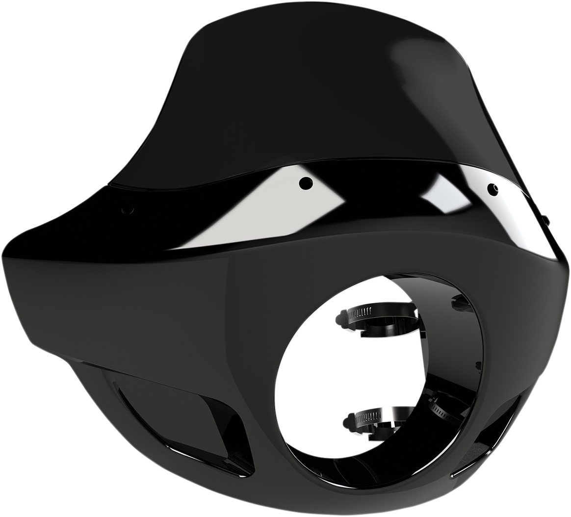Embody the aggressive cruiser style; the sweeping lines flow nicely with the motorcycle and look great with a variety of handlebar setupsFlanking the headlight bucket are two styling pockets with great potential for further customization with lightingMade of high-quality, molded ABS and paired with an opaque impact-resistant acrylic windscreen for strength and durabilityIncludes universal mounting kit consisting of black powder-coated, heavy-duty steel bracketsFits 35mm-49mm forks and most 5.75" headlights