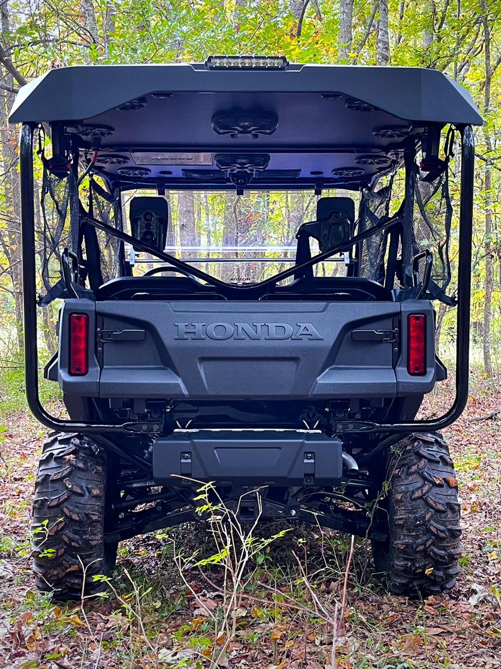 Front 31” 150W sleek, high-output single-row LED light barRear 11” 50W sleek, high-output single-row LED light barBacklit switches for light bars and interior lights - easily control your lights at nightRBG LED Interior light kit includes four lightsPhone app-controlled (iPhone and Android compatible)Lights dance to the beat of your musicKicker® KMC2 multimedia gauge-style marine receiver with BluetoothBluetooth audio streamingAM/FM digital tunerUSB input and USB chargingRCA aux input headphone jackKicker® 6.5” PS-Series speakersTitanium tweetersNeodymium magnets for high power with low weightLightweight, weather-resistant polymer basketsWaterproof suspension systemKicker® COMPRT 10” 400W, 1 ohm subwooferDual voice coilExtra-large surround roll for deeper, smoother bassKicker® PX series amplifiers300 watt – 4 x 75 watt full-range amplifier500 watt – mono subwoofer amplifier on configurations with subwooferWeather-resistant, IP66 ratedActive crossoverFiberglass composite shell styled to match the OEM bodyworkInfused resin process layered with directional fiber orientation for ultimate rigidity and strengthRigid design improves sound quality for the cleanest bass and crispest highsStrengthened edges to protect from tree branch strikesCage clamp fasteners hidden on the top side for a smooth yet aggressive designIncludes two zipper pocketsHoppe Liner Coating for durable, all-weather protectionSpecs