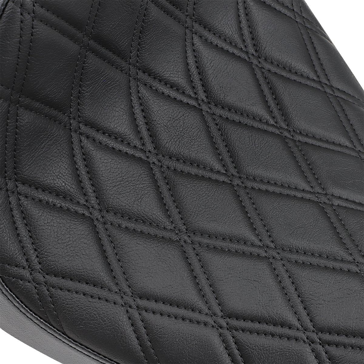 Café racer style seat with molded flexible polyurethane foam for maximum comfort and improved stylingAutomotive-grade vinyl covers3/16” ABS thermoformed seat base with fully carpeted bottom and rubber bumpers to protect paintNot compatible with rear solosSeat mounts to the center hole in the fenderIncludes mounting hardwareMade in U.S.A.Not for '04-'09 XL models due to the location of the ECM.Specs