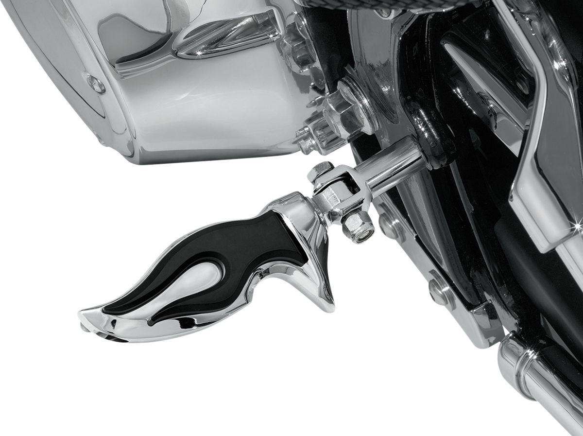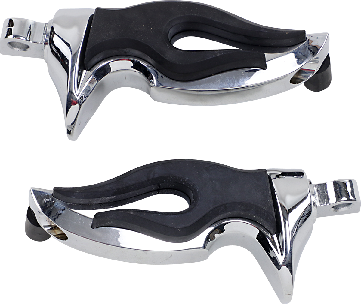 Flame design adds timeless styleChrome bodies with rubber flame inserts provide comfort and help isolate the foot from vibrations