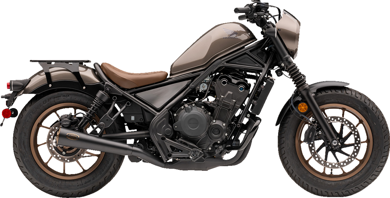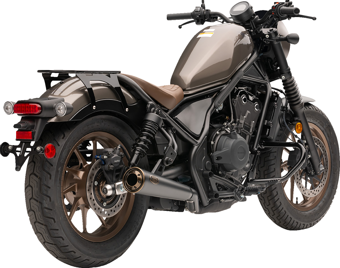 Machined aluminum bronze tip with matching laser cut bronze steel Cobra logoUses louvered cores for enhanced performance and improved soundNoticeable increase in sound quality over the stock muffler4" diameter black power-coated megaphone body Made in California50-State legalSpecs