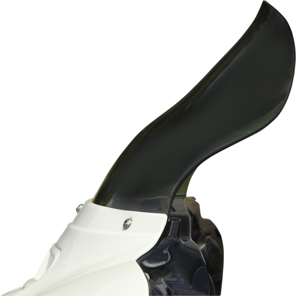 • Wind tunnel designed and tested, the "hips" provide added downforce while the flip at the tip directs air over the rider to help eliminate the swirl of air found in front of the rider on standard windshields