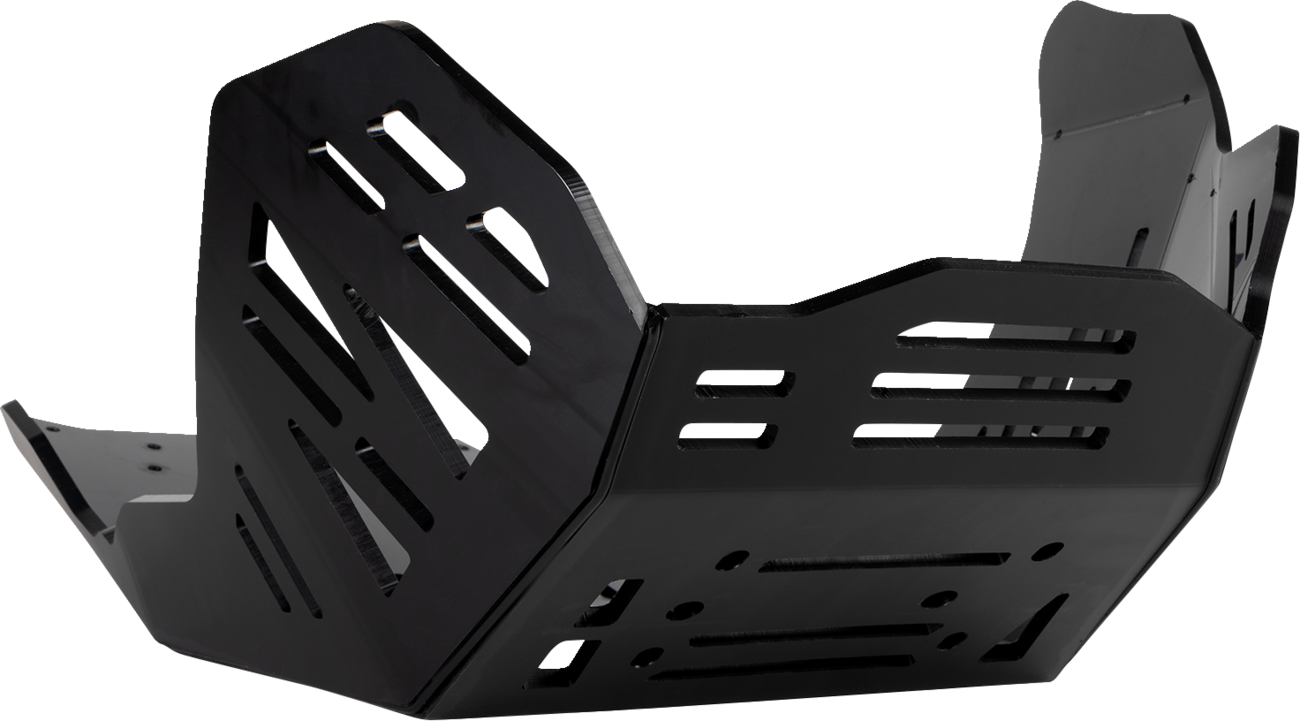 Made of High Density PolyEthylen (HDPE) plastic 8 mm thickProtects the engine block and the important parts of the bike30% - 40% lighter than alloy platesSump guard erases reasoning noise from rocks impacts, does not generate any vibration and does not undergo dformationsMake the maintenance easier than with alloy optionThe fixation system has been done to be robust and lightweightSpecs
