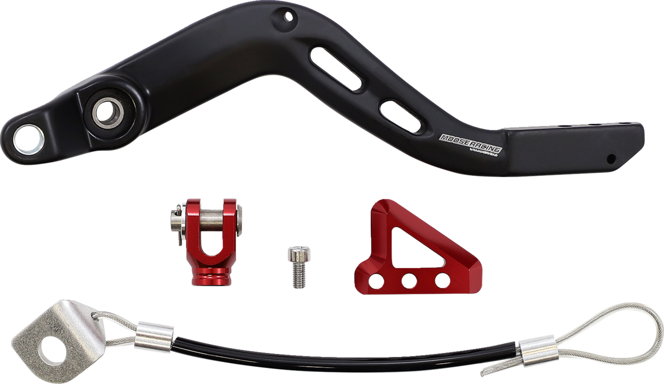 Moose Racing has teamed up with Hammerhead to bring you the ultimate brake pedalThe brake pedal arms are forged from 6061 with stainless steel clevis pin sleeves and brass mounting bolt sleeve bushingsBrake tip is finely machined CNC part with stainless steel set screws for durability and gripBrake tips can be adjusted for length in two mounting positions and are connected with stainless steel socket screwsThe brake pedal arm is anodized in a matte black finish and the tips are anodized in colors per bike brandEvery brake pedal also comes with a stainless steel brake snakeAnodized with UV protection to preserve colorMade in the U.S.A.Specs