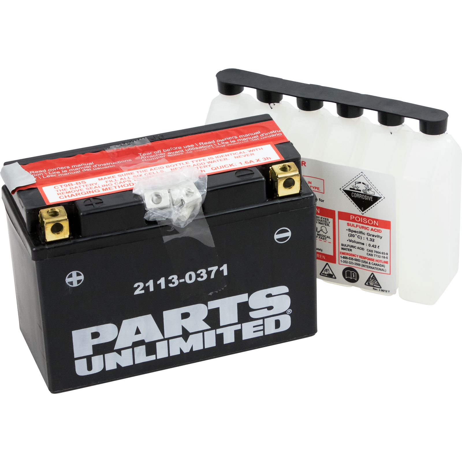 Parts Unlimited is proud to offer a premium-quality, maintenance-free battery at a great low priceSpecial absorbed-glass mat battery eliminates water loss, permitting the battery to be permanently sealed once it is filled with acidHolds charge three times longer than conventional batteriesHigh performance active material with anti-sulfation additiveHigh capacity and cranking performanceSpecs