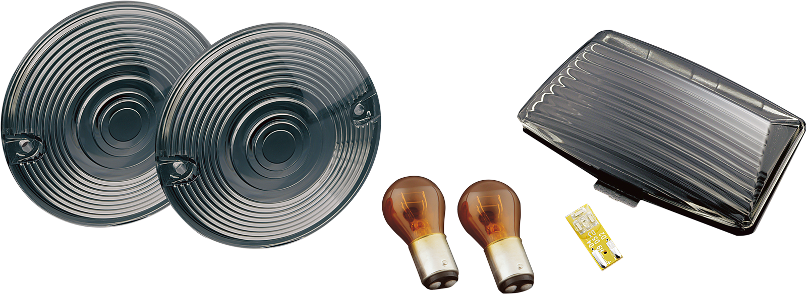 • Kits include fender tip lens with LED bulb and a pair of FL-style smoke turn signal lenses with colored incandescent bulbs