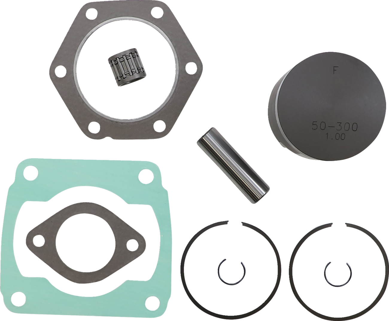 Top-quality piston kitIncludes pistons, rings, pins, clips, racing needle bearings, head and base gaskets, intake and exhaust gasketsSpecs