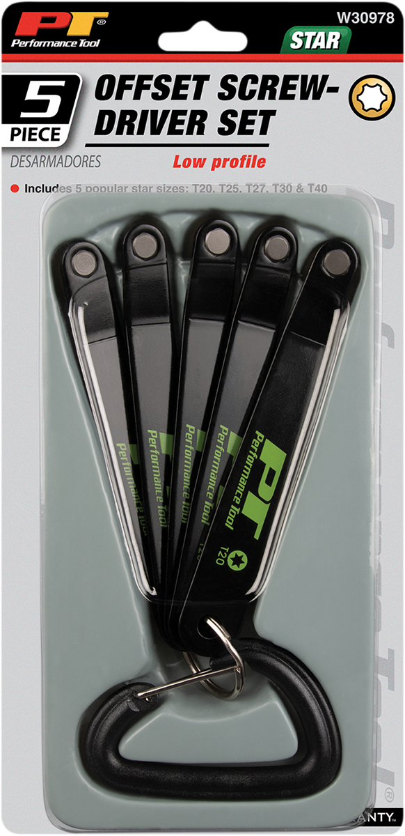 Great for everyday projects at home, garage, shop and office such as automotive fasteners, electronics, home appliances, equipment and moreLow profile design feature 3/8" (10 mm) clearance and 15º offset angle for improved access for hard to reach fastenersIncludes key ring and carabiner clip for convenient organization and compact storage5 popular star sizes: T20, T25, T27, T30, T40