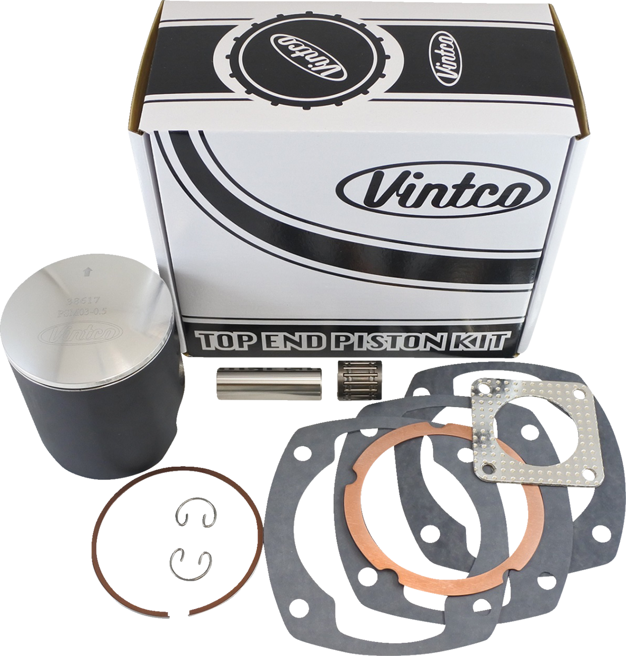 Includes a piston, rings, pin and clips, top end bearing and a full top-end gasket kit (head gasket, base gasket, intake gasket, and exhaust gasket)