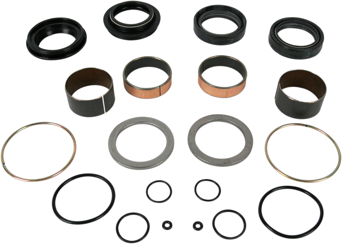 Come with everything needed to do the job right the first timeKits contain fork seals, wipers and upper and lower bushingsSpecs