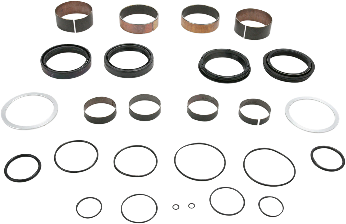 Come with everything needed to do the job right the first timeKits contain fork seals, wipers and upper and lower bushingsSpecs