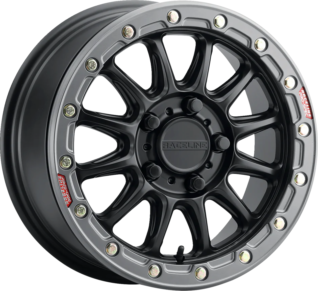 Constructed out of heavy-duty A356 aluminum with a forged 6061 beadlock ring with grade 8 zinc beadlock hardware includedAggressive 12 scalloped spoke design with its contrasting beadlock ring gives it a true rally inspired race lookBlack-Out snap-in Raceline cap with contrasting red Pro Spec beadlock logosEngineered to be one of the strongest wheels available