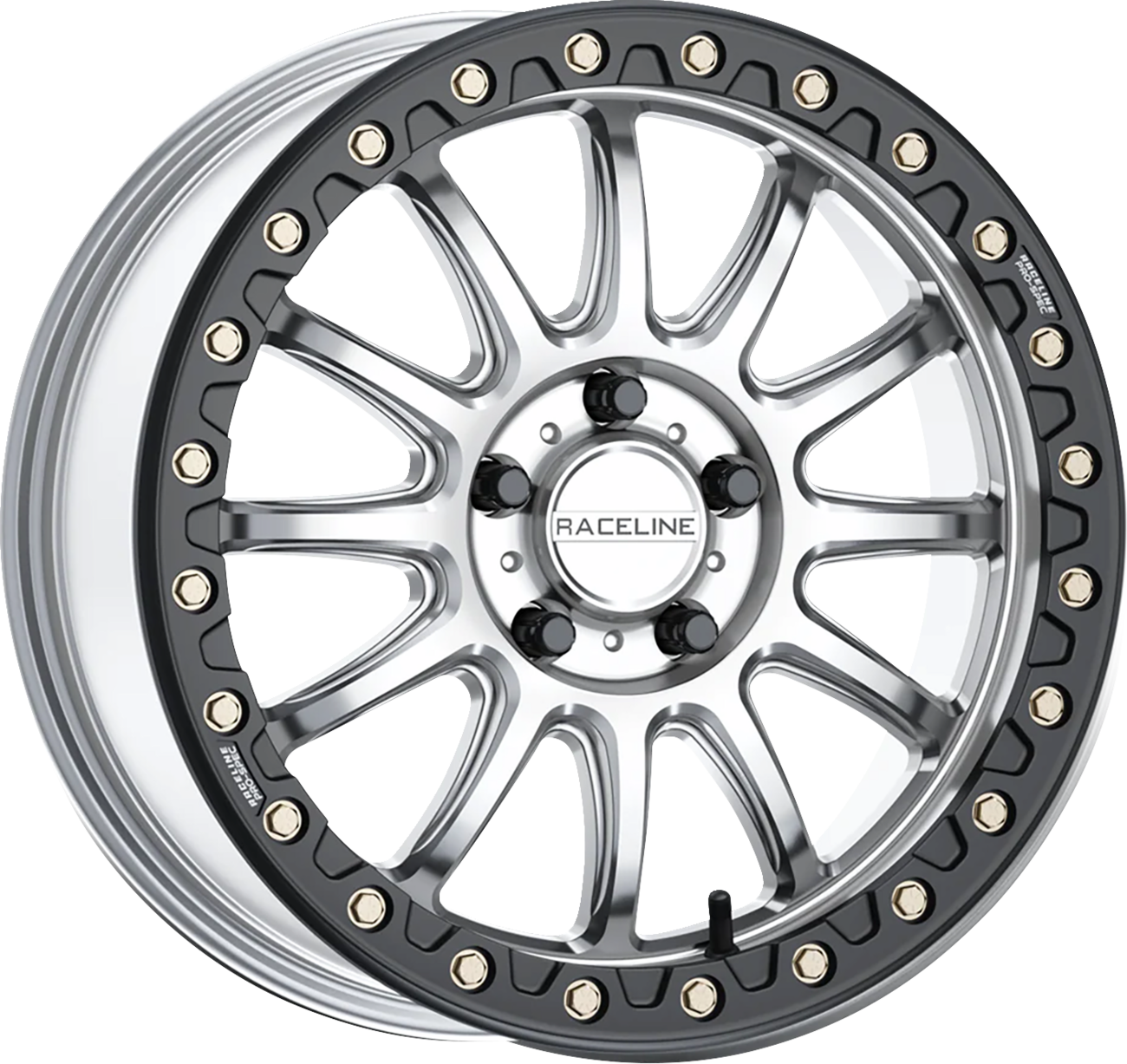 Constructed out of heavy-duty A356 aluminum with a forged 6061 beadlock ring with grade 8 zinc beadlock hardware includedAggressive 12 scalloped spoke design with its contrasting beadlock ring gives it a true rally inspired race lookBlack-Out snap-in Raceline cap with contrasting red Pro Spec beadlock logosEngineered to be one of the strongest wheels available