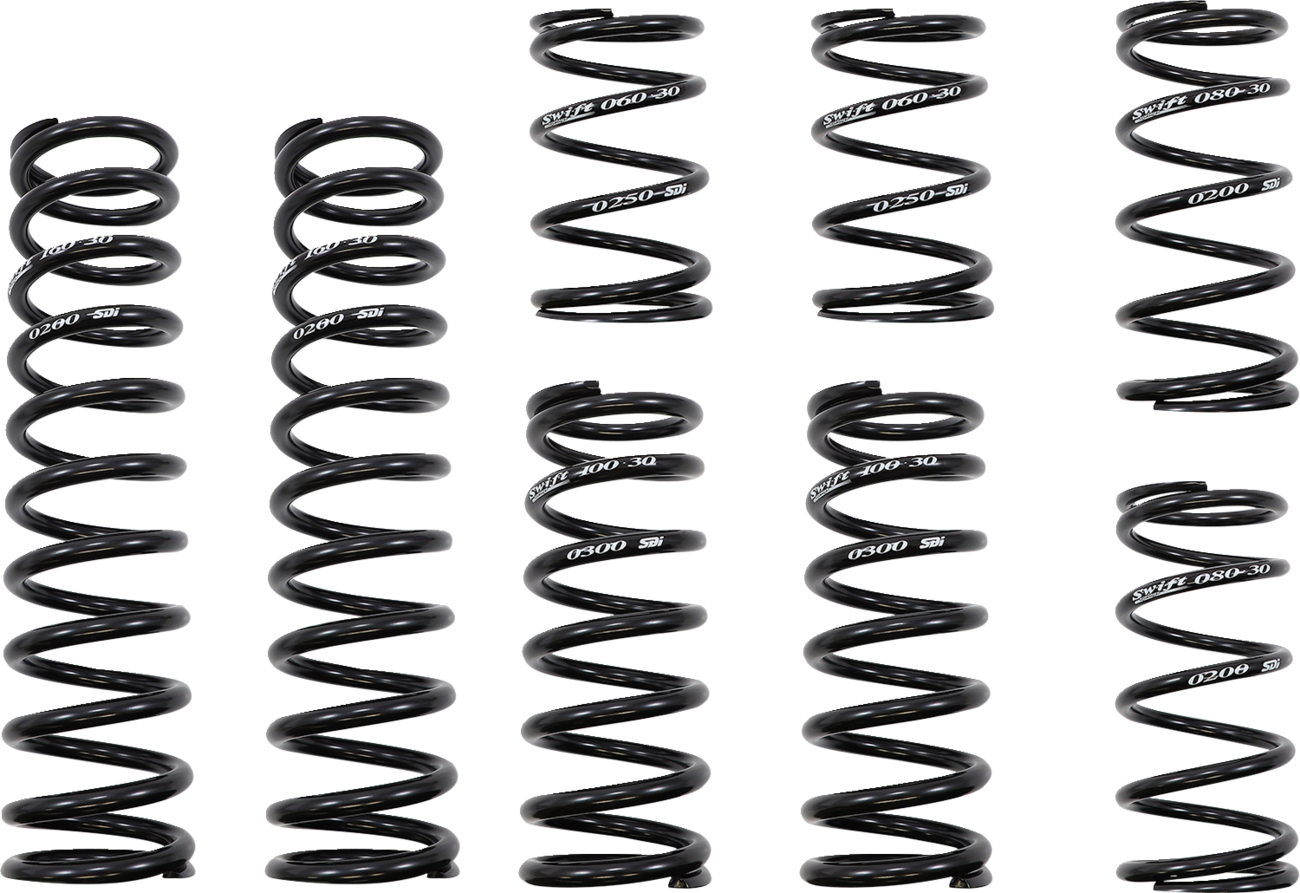 Fine tuned and tested to improve your vehicle’s rideFor use on Walker Evans equipped vehiclesGives your RZR a true dual rate setup, utilizing both springsGreatly reduces body roll, nose dive (bucking) and bottoming (G-out resistance)Durable plastic motocross-inspired ring for easy adjustments and installationIncludes four tender springs, two main springs and four crossover ringsMade in the USASpecs